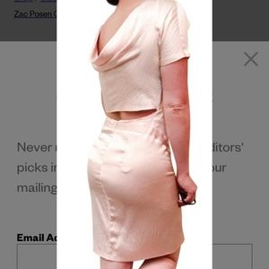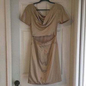 Nude/Beige Satin dress. Drape front and back. Back is cut out style at the waist.