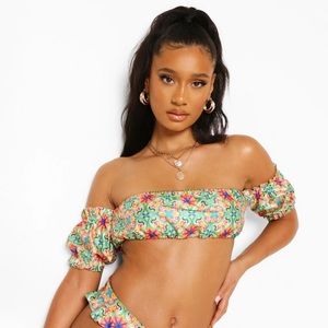 Colorful bikini style off the shoulder top size medium