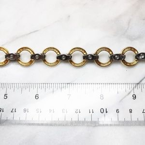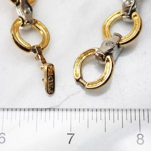 This sparkling, dazzling bracelet by Paolo Gucci features highly polished gold tone rings with silver tone connectors. It measures 7.5"L, is signed PAOLO on the fold over clasp and is in excellent vintage condition. This piece would make an excellent gift for Gucci lovers, collectors or add it to your own collection. Worn with silver or gold this piece is timeless and adds effortless glamour. Please take a look at the other Paolo Gucci jewelry in our boutique. All reasonable offers accepted.
