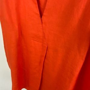 Neiman Marcus Orange Sleeveless V-Neck Tank. Flows open in the front. Asymmetrical bottom.