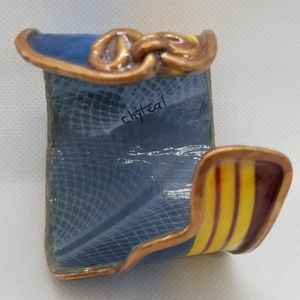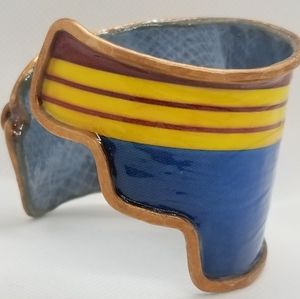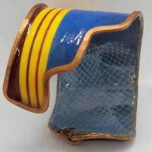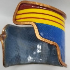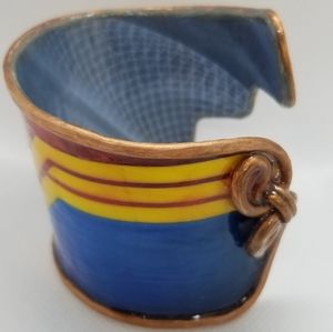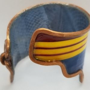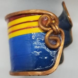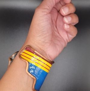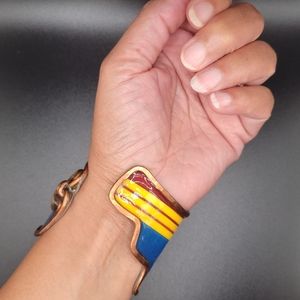 Bracelets are intricately handmade made w/recycled materials. Each has an authentic copper armature & are sealed with a sealant that makes product at least 80% moisture resistant (from sweat or etc.). DO NOT immerse in water. Cuffs range between 6-7 inches in length unless it's a wrap around design. Bracelets are slightly flexible to open to fit arm. They take 10-12 hours to create w/love. Oxidation & aged look is normal & enhances the design cuff.