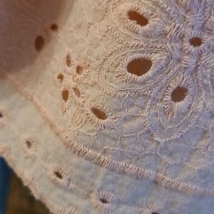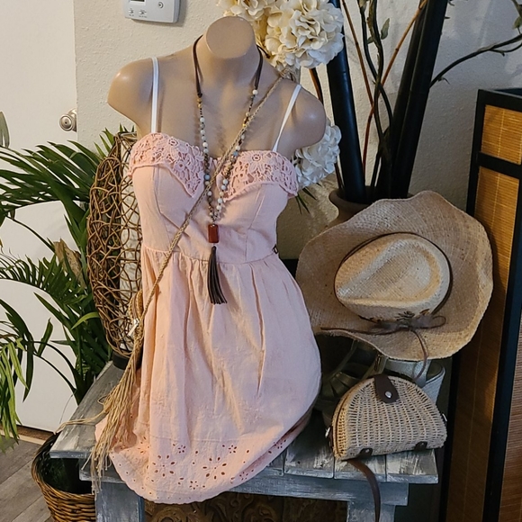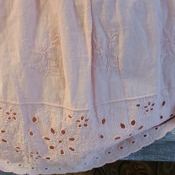BEAUTIFUL LACE AND EMBROIDERY DETAIL THROUGHT DRESS...COLOR IS PRETTY SOFT PEACH. PERFECT FOR SUMMER..CAN MATCH WITH SANDLES HAT AND JEWLERY. ..I LOVE THIS ONE. YOU WILL TOO.