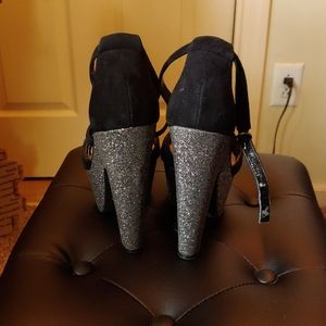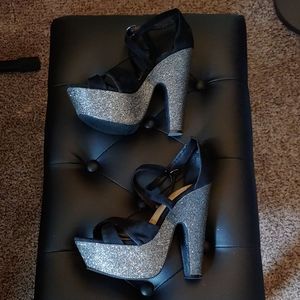 Pre-loved; beautiful silver glitter platform heels. I have too many shoes at this point with more on the way so I need these to go 😂🙈 Process of elimination.