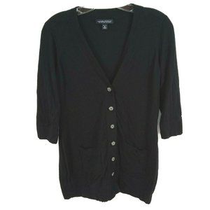 Banana Republic Petite Medium Black Silk Cotton Cashmere Knit Sweater Cardigan Buttons