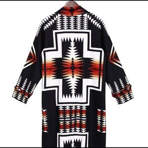 Awesome vintage inspired tribal print blanket trench reimagined for today in an updated fit.