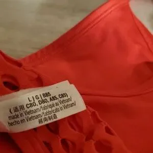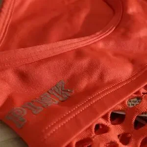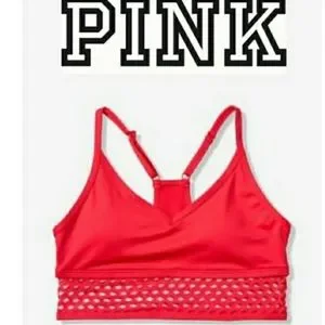 Victoria's Secret PINK red racerback sports bra. Adjustable straps. Mesh opening elastic band. Comfortable athletic wear. Unlined. Pull over style. Size Large.