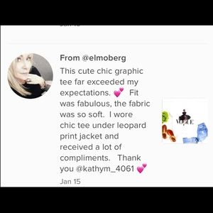 This super-soft, chic graphic tee is quality constructed from a cotton/polyester blend. It features a crew neck, short sleeves, washable Also featuring graphic lettering in black & design in a cool mixture of plum, black & brown against a yellow (color is deeper than cover shot depicts) background. Did I mention super soft & comfy?!?