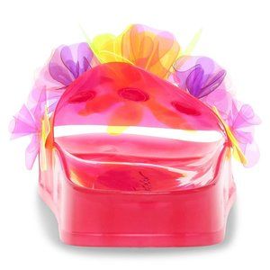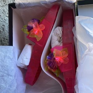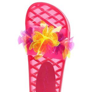 Betsey Johnson takes casual to a whole new level with this vibrant colored slide.