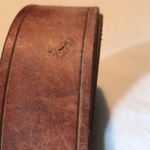 Leather belt 45 inches long and 1 inch wide. Used still in good condition. There are some stains and a small scratch.Tan color