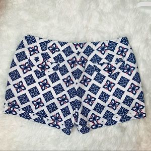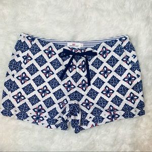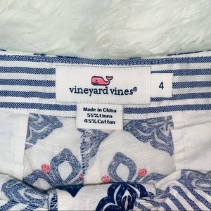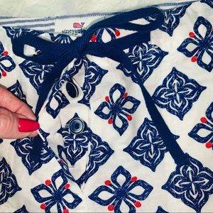 Cute linen blend shorts by Vineyard Vines. Cuffed at the bottom, loose fitting & has a tie at the waist & 3 buttons.