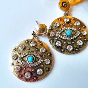 Evil Eye Crystal Vintage Gold Dangle Earrings