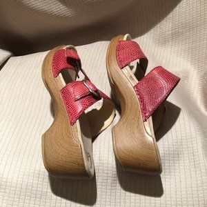 Dansko coral red leather wedge clog sandals, 8.5