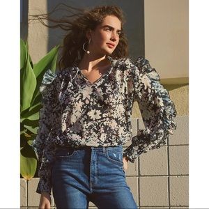 NWT Express Metallic Floral Ruffle Top