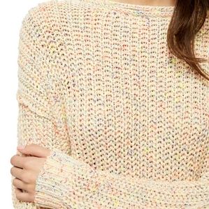 Wonderfully oversized, with dropped shoulders and a chunky open knit flecked with color, this is the sweater to update and invigorate your casual loo