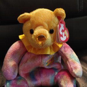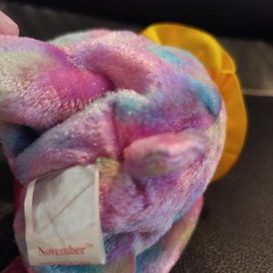 Adorable Topaz November Beanie from the Birthday Beanies Collection. Tag is in perfect condition and ready for giving. Beautiful watercoloring with neck ruffle and gold fur, and a topaz nose. In stunning MINT condition!