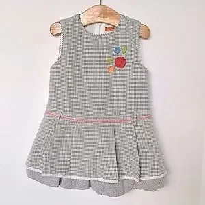 Mayoral Gray and White Houndstooth Dress w 3D Felt Flowers