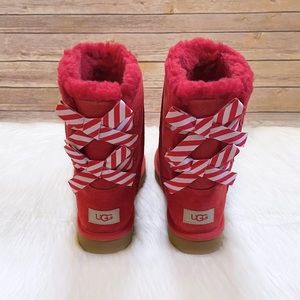 UGG Bailey Bow Diagonal Stripes Poppy Red Boots