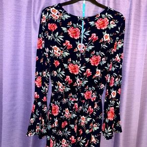 Navy blue with flowers, long sleeve romper.
