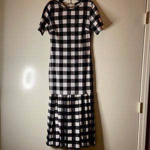 Beautiful Black and White Dress size M but can fit L. Fitted in the waist mermaid Stuart the bottom.