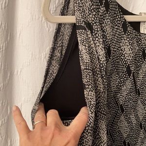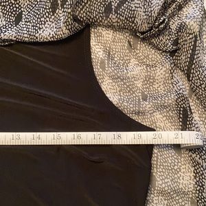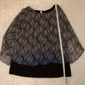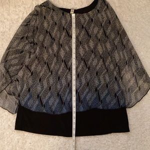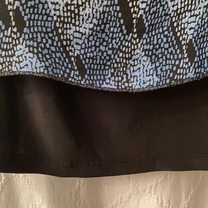Easy to put together a full outfit with this double layer tank. Toss it on with a pair of black pants for the office. Sleeveless ombré color from black/gray to black/blue. This is in perfect condition and so easy to wear.
