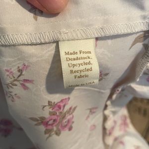 Light to medium weight off-white and purple, pink and white floral deadstock fabric, feels like cotton