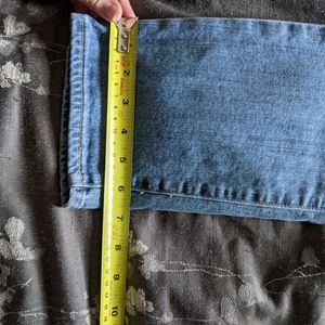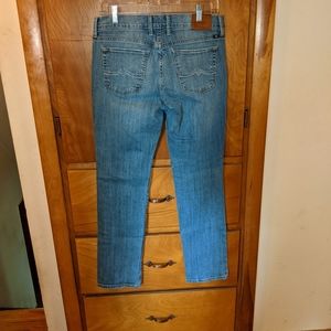 This is a pair of Lucky Brand Jeans. They are the "sweet and straight" style. 2nd pic is length top to bottom, 6th is ankle width, 9th is rise, 11th is flat lay waist. These aren't brand new but they are in very good condition. I didn't see any holes or stains. The only issue, a couple of smushed spots. 4th and 5th pictures show this.