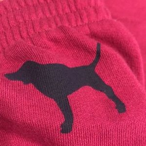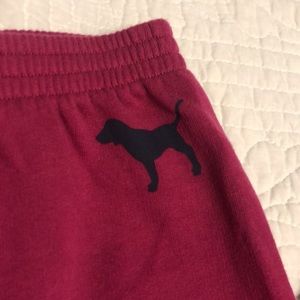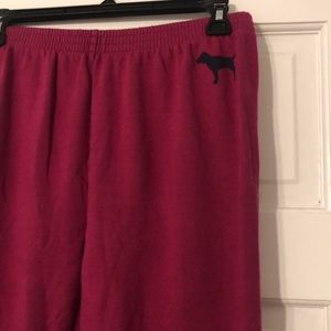 Victoria’s Secret PINK sweatpants. Lighter weight. Dark pink color with navy blue dog logo. Worn once or twice. Size S