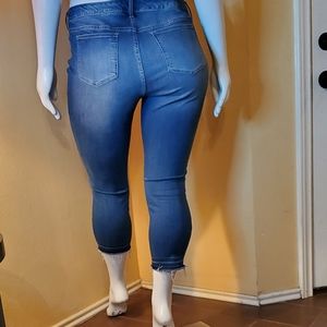 New, never worn, premium distressed hem cropped jeans. Size 18.