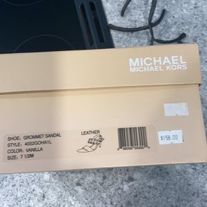 Michael Kors leather, grommet sandal Vanilla color with silver grommets. 3” heels. Has little damage on one. See last photo.