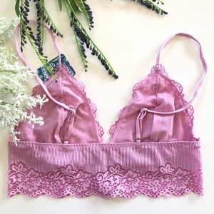 Daring and delicate this lacy bralette features a plunging neckline and slinky adjustable straps. Offers light support for most A-C cup sizes.
