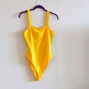 Soft stretchy yellow body suit. Slightly see through. Never worn. Snap button closure.