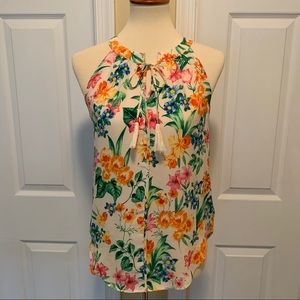 Pretty cream color floral sleeveless halter top with tassels....cute by itself or under something!