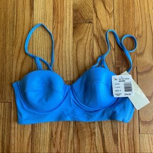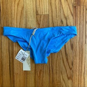 BRAND NEW (NWT) Blue bikini set in size small. Fits more like an XS. In perfect condition, never been worn and still has hygiene sticker on bottom. Cheeky bottom! Made in the US, sustainable!