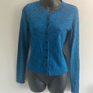 Diane Von Furstenberg sweater size medium ... blue and black, front button up, in excellent condition with no issues. Chest 32”, length 30”, underarm 19”. 100% wool.