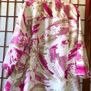 LOOKING FOR A LATE SUMMER/EARLY FALL PIECE? 100% Linen. Floral/Abstract print long sleeve, button down, linen shirt. Breast pockets. Pretty shiny gold buttons down the front. Ideal for spring or cool summer evenings. Great look for meetings. Easily converts to after work attire.