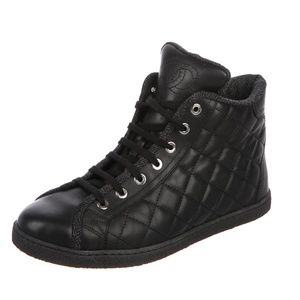 Very Good. Minor scuffs at soles, counters, and sides; slight creasing at counters and vamps; light discoloration at interior.