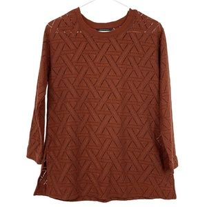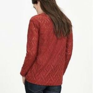 Banana Republic Top Women Size Small Rust Brown Red Geo Lace Pullover Sweatshirt. Good condition. Side slits at bottom. Long sleeve.