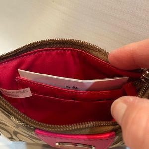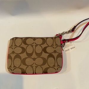 Coach wristlet NWT signature print hot pink trim