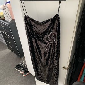 Dazzle in this-seasons glamorous sequence number! Get ready for a night out on the town with our Leah Dress! Crafted from embellished Black sequins, featuring spaghetti straps, a low scoop back and an exposed Gold zipper at the back of the dress. This style will be sure to turns heads.