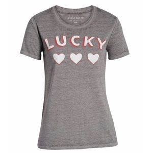 LUCKY BRAND T-Shirt Three Hearts. Grey Tee with white hearts.