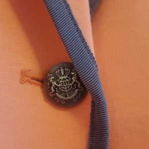 Super cute, stretchy material that almoat feels like your favorite hoodie. Faux pockets, one button closure. Cuye oolka dot detail at sleeves.