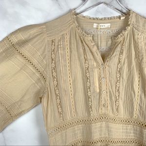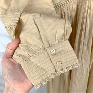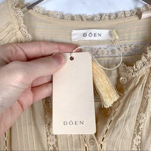 Brand new with tags sold out rare Dôen “Vicia” midi dress in “Sandstone.” Gorgeous feminine floral lace & cotton voile details. Button-down shirt style with button cuffs. Hidden side zipper. Please see all photos. Size S.