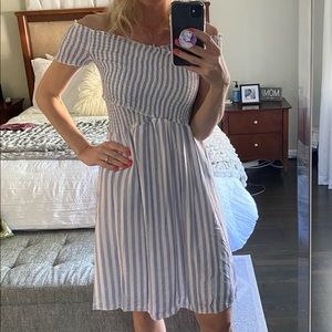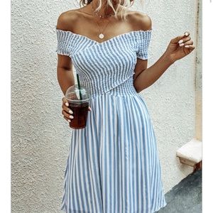 New , never worn. Size small. I normally wear XS and this could fit a little tighter. No zipper very cute for a summer wedding or summer party.