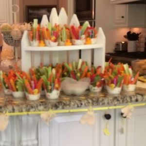 Indescribably cute!!! Handmade mini boy themed bib overalls and girls sweater with tiny flower appliqué. Can be placed on Ribbon for baby shower garland around the gift table. However there are endless possibilities for these adorable items. They would be great for a gender reveal party as they were done in Neutral color. These will be a one of a kind decoration that will have your guests loving your selection!!!! These would also make very cute party favors. 15 bib overalls, 19 sweaters.
