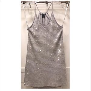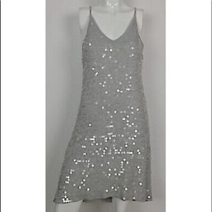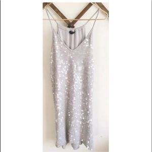 Super cute light grey racerback sequins dress. The clear colored sequins is over cotton making it super comfortable. Worn once
