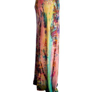 New Beautiful designer hand painted tie-dye silk dress one-of-a-kind Chic boho style summer beach dress for all Occasions. Easy-care machine wash cold hang dry travels fabulously. Size 6 petite, will fit multiple sizes because of the bias cut and flowy skirt.