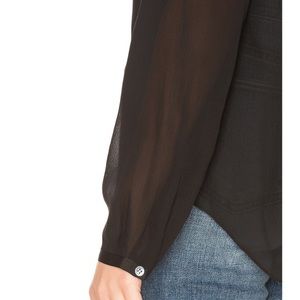 Theory Rianala Black 100% Silk Lace Chiffon Top