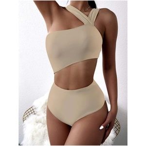 Cut out strappy monokini boho Lilac One Piece Swim