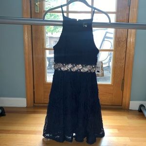 Trixxi Womens Juniors’ Embellished Soutache Navy Blue Party Dress, Size 3