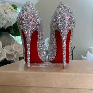 Worn twice. In great condition other than the scratching on sole (pictured.) All crystals are in tact. Original box and dust bags included. Purchased originally for $3595 (+tax.)